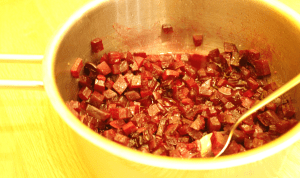 wärmende Kartoffelsuppe mit Rote-Beete-Würfeln